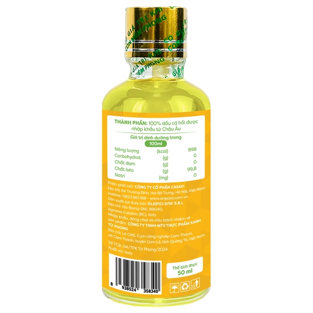 Với thành phần 100% dầu cá hồi nhập khẩu từ Châu Âu.